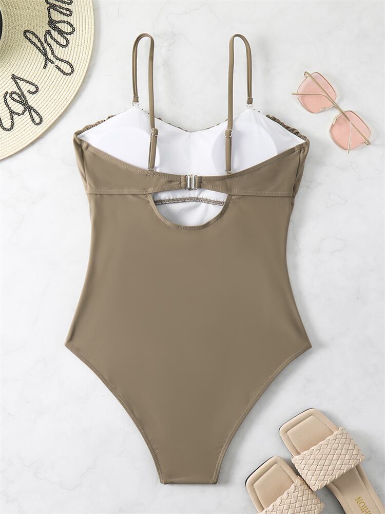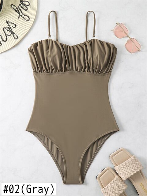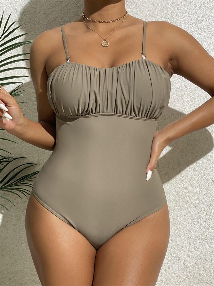 送料無料 ワンピース女性水着 2023 ソリッドシャーリングバンドゥ水着セクシーなボディスーツモノキニ夏のビーチウェア水着 サマー 夏物 ソリッドカラー AE12127767580547032788