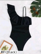 送料無料 ワンピース水着女性 2023 ソリッドフリルスリング水着メッシュセクシーなボディスーツモノキニ夏のビーチウェア水着 サマー 夏物 ソリッドカラー AE1212776755816304623