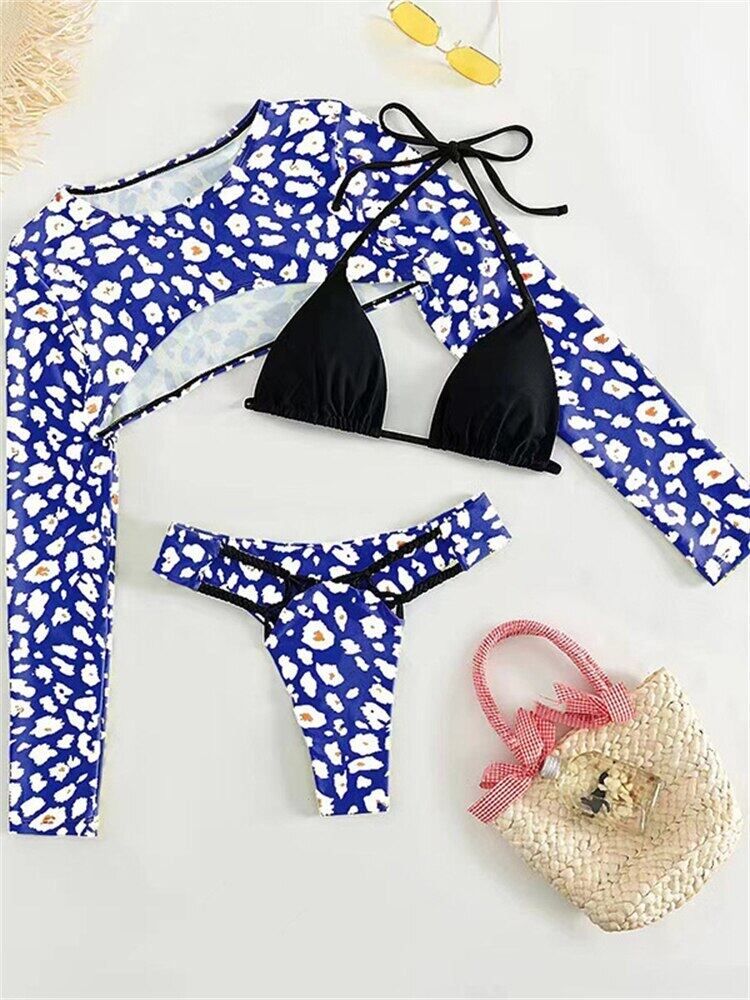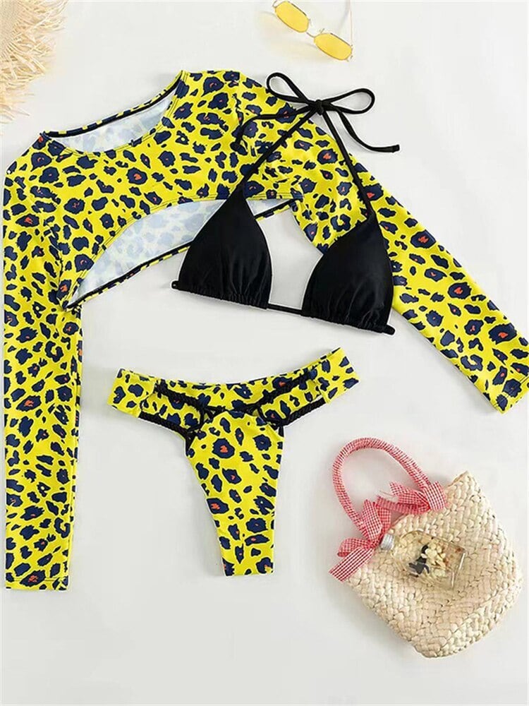 送料無料 ビキニセクシーな女性水着 2023 ヒョウ長袖ビキニセット Tバック水着 3 ピース水着夏のビーチウェア ロング サマー 夏物 AE1212776752499331275