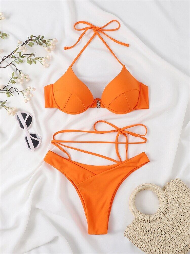送料無料 セクシーなビキニ女性水着 2023 ソリッドスリングプッシュアップビキニセット Tバック水着夏のビーチウェア水着 Biquini サマー 夏物 ソリッドカラー AE12127767517305230915