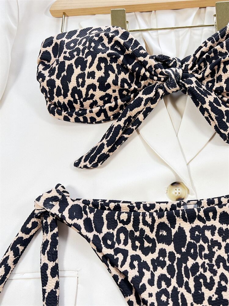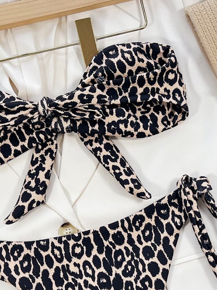 送料無料 ビキニ女性水着 2023 ヒョウバンドゥビキニセットセクシーな弓レースアップ Tバック水着夏のビーチウェア水着 リボン サマー 夏物 AE12127767535396991415