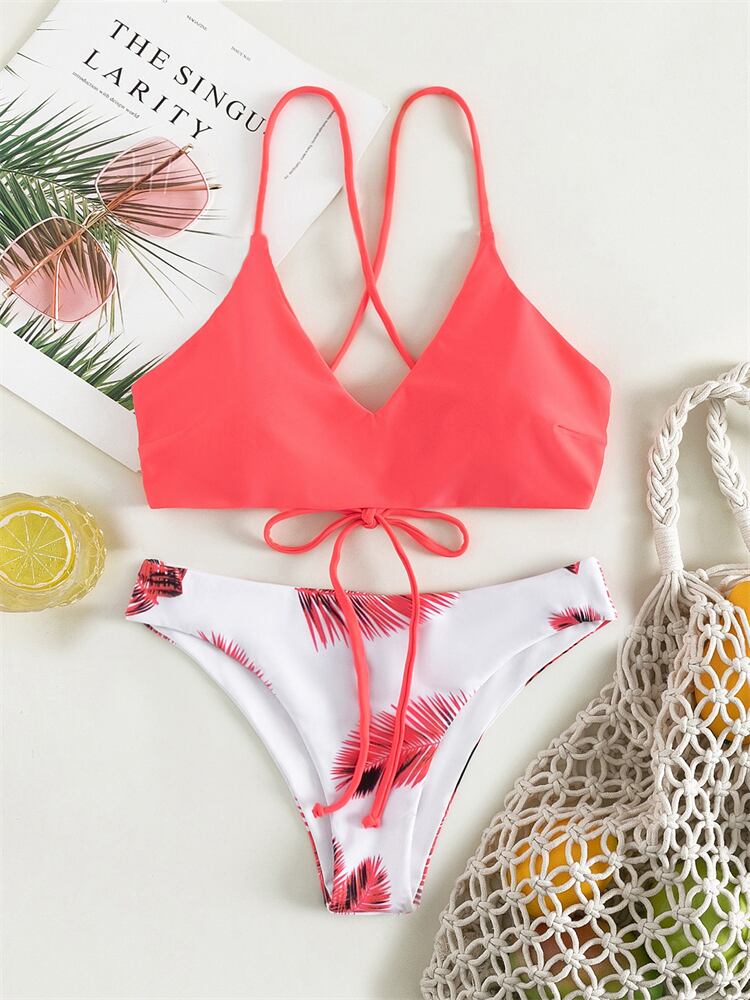送料無料 ビキニセクシーな水着女性 2023 ソリッドとプリントビキニセット Tバック水着レースアップ Biquini 夏のビーチ水着 サマー 夏物 ソリッドカラー AE12127767515028167660