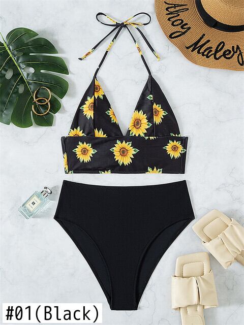 送料無料 ビキニセクシーな女性水着 2023 プリント花柄ホルタービキニセットウエスト水着背中の開いたビーチウェア水着 AE12127767533727358004