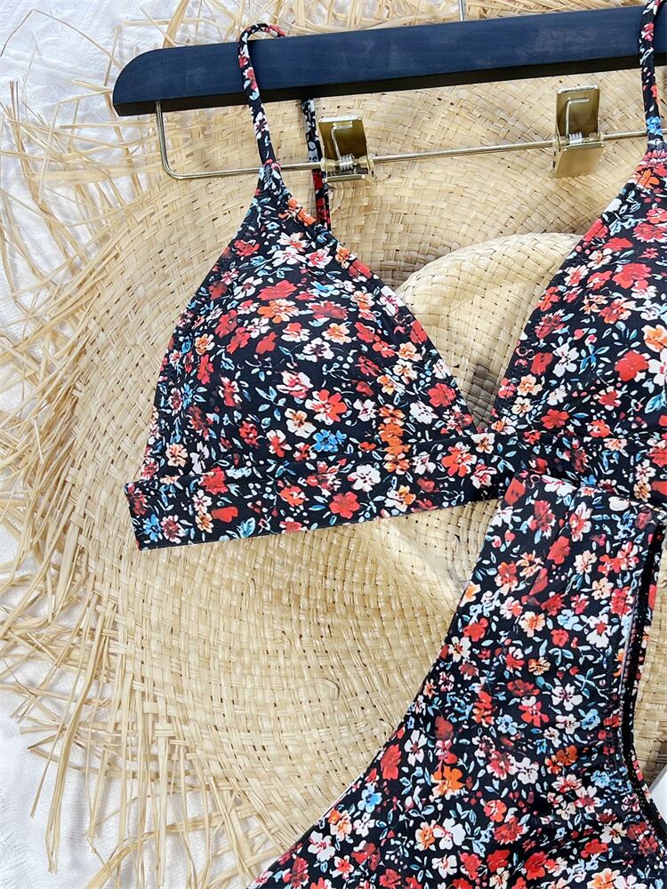 送料無料 ビキニ女性水着 2023 プリント花柄スリングビキニセットセクシーな Tバック水着 2 ピース夏のビーチウェア水着 サマー 夏物 AE12127767571568236468