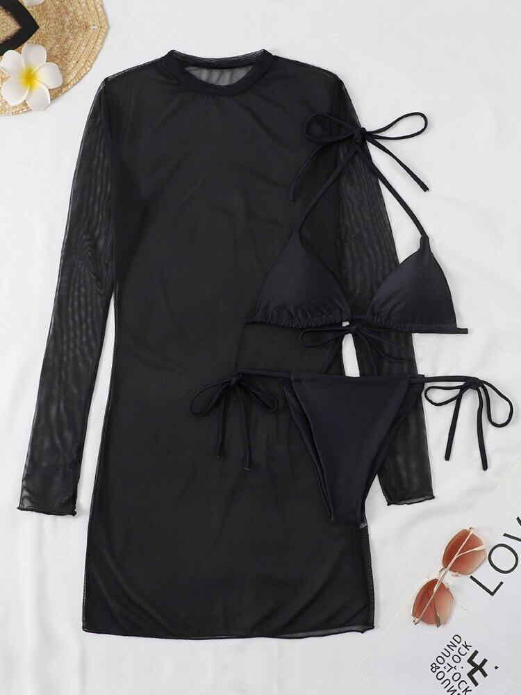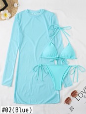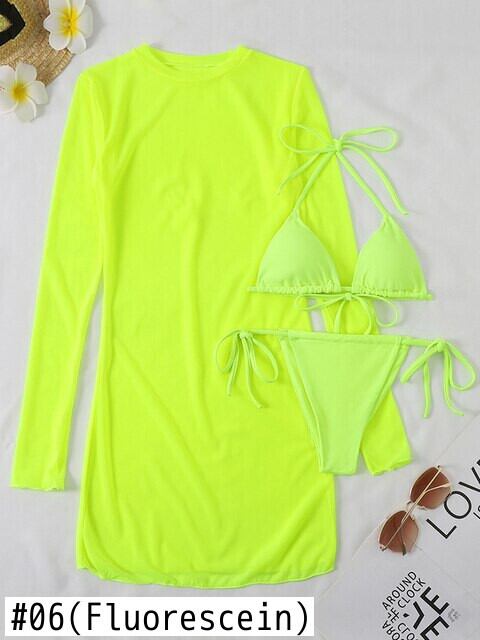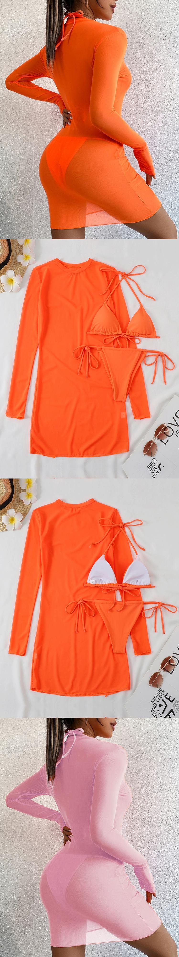 送料無料 ビキニ女性水着 2023 固体ホルタービキニセットセクシーな水着長袖ビーチカバーアップ夏水着 ロング サマー 夏物 ソリッドカラー AE12127767530755809499