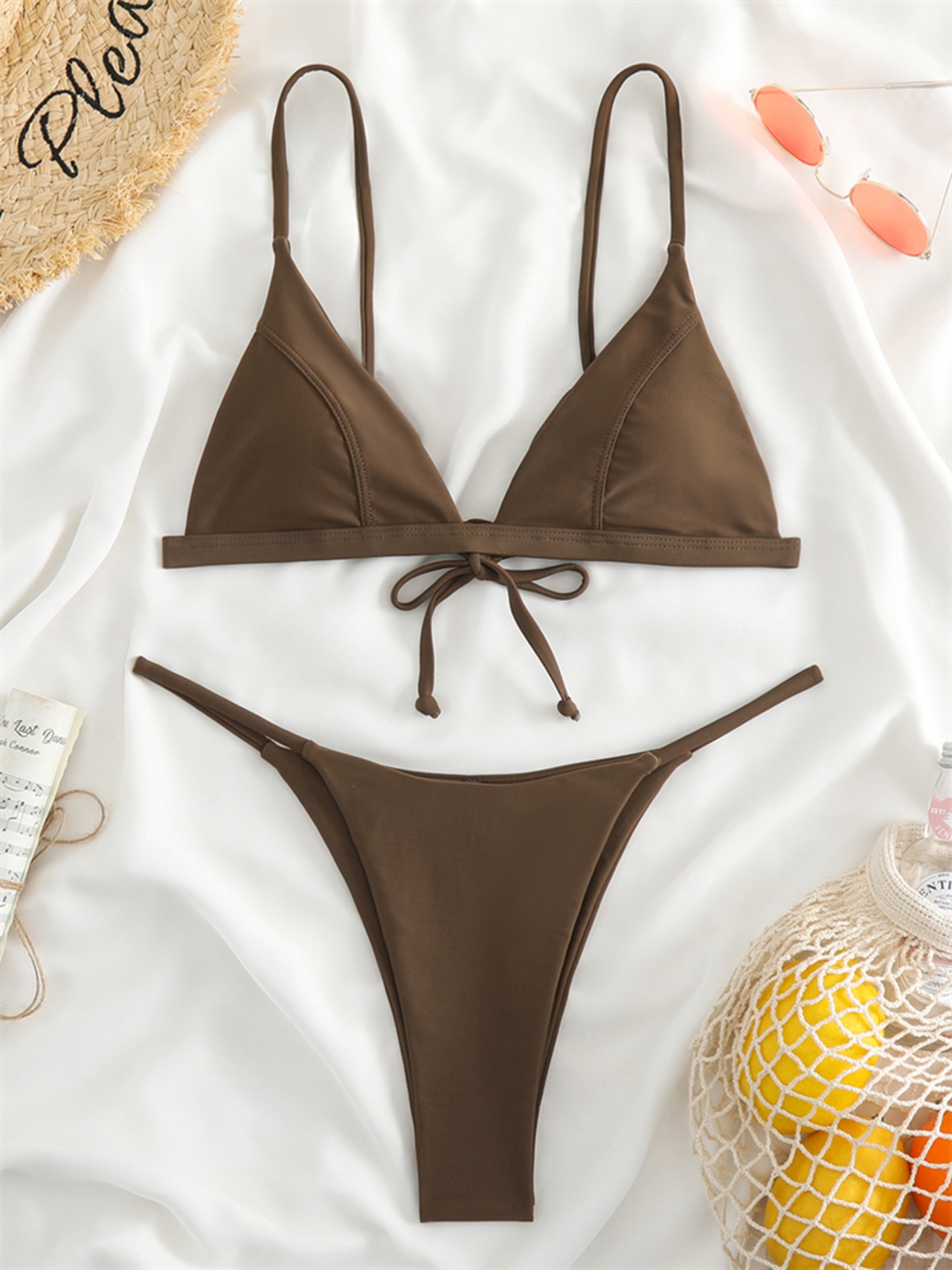 送料無料 マイクロビキニ女性水着 2023 ソリッドスリングビキニセット Tバック水着セクシーな夏のツーピースビーチウェア水着 サマー 夏物 ソリッドカラー AE12127767532555644297
