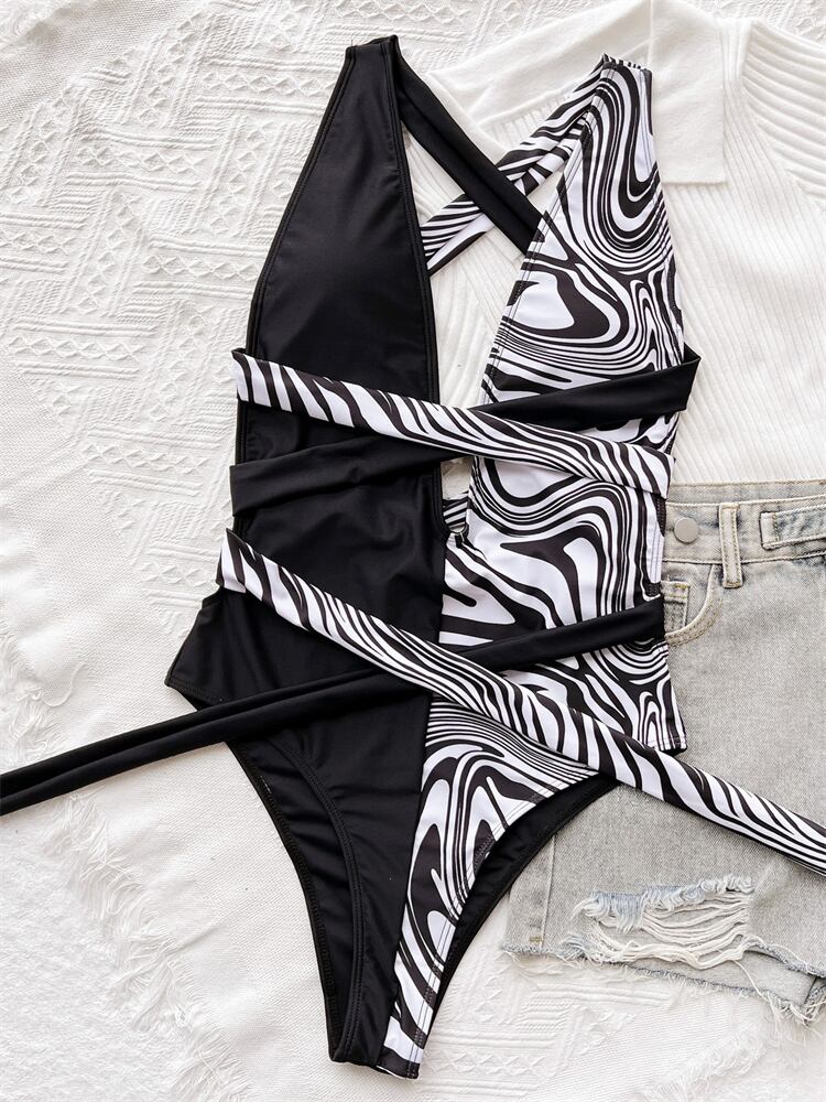 送料無料 ワンピース女性水着 2023 V ネック背中の開いた水着レースアップセクシーなボディスーツモノキニ夏のビーチウェア水着 サマー 夏物 Vネック AE1212776753350098559