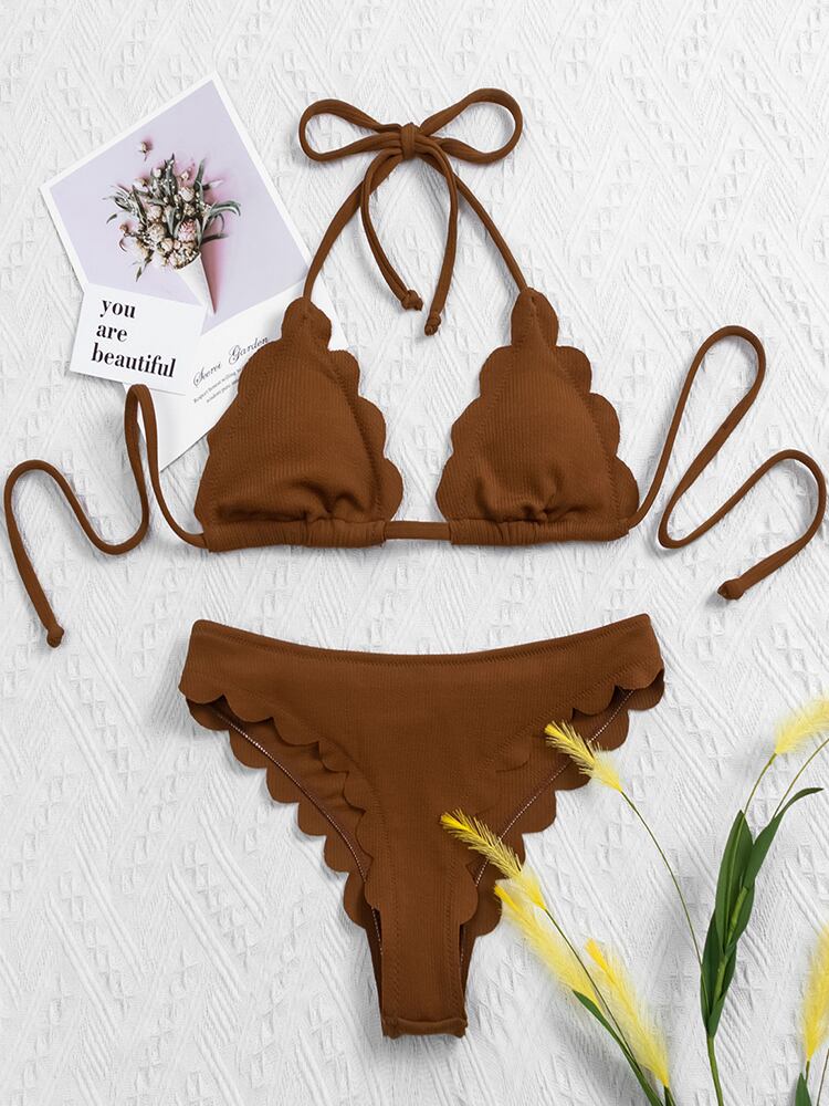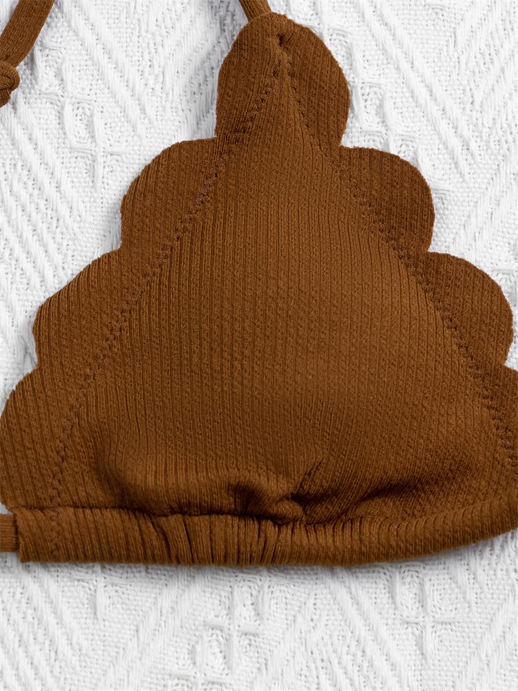 送料無料 ビキニ女性水着 2023 固体リブビキニセット Tバック水着セクシーなフラワーエッジレースアップ夏のビーチ水着 サマー 夏物 ソリッドカラー フラワーデザイン AE1212776751874900207