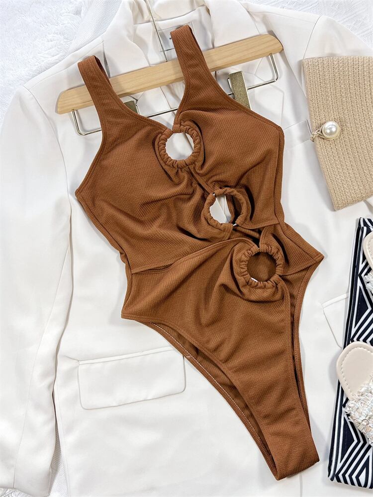 送料無料 ワンピース女性水着 2023 ソリッド中空アウト水着 V ネックスリングセクシーなボディスーツモノキニ夏のビーチ水着 サマー 夏物 Vネック ソリッドカラー AE1212776757766967405