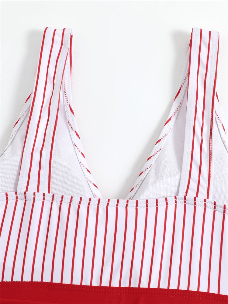 送料無料 ワンピース水着 2023 レッドストライプ V ネック水着女性ベルト付きセクシーなボディスーツモノキニ夏のビーチウェア水着 サマー 夏物 ハーネス Vネック AE12127767579938996864