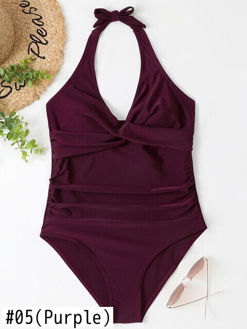 送料無料 ワンピース水着女性 2023 ソリッドホルター V ネック水着セクシーなボディスーツモノキニ夏のビーチウェア水着 サマー 夏物 Vネック ソリッドカラー AE12127767565233691673