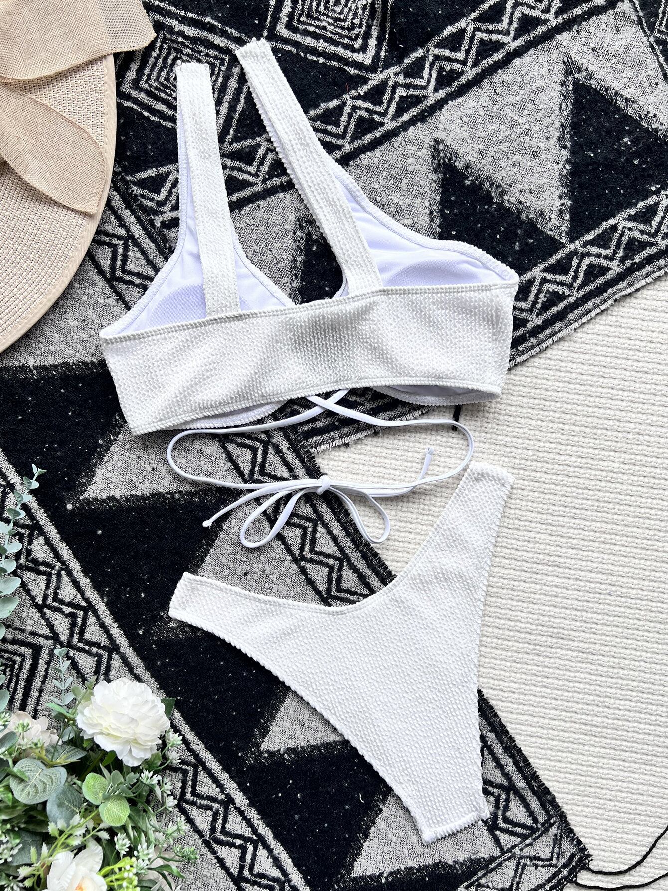 送料無料 セクシーな女性水着 2022 カットビキニソリッドリブビキニセットワンショルダー水着 Biquini 水着ビーチウェア ソリッドカラー AE121255657822489466