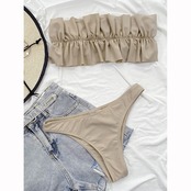 送料無料 2022 バンドービキニセクシーなブラジリアンビキニセットフリル女性水着固体水着水着ビーチウェア ソリッドカラー AE1212556541665020891