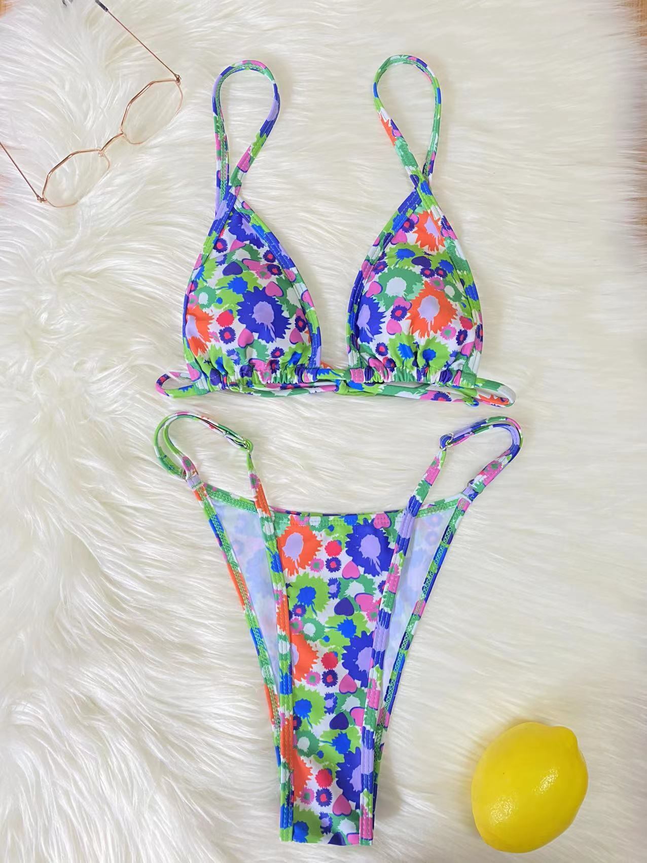 送料無料 マイクロビキニセクシーな Tバック女性水着 2023 水着プッシュアップビキニセット花水着 Sutis ビーチウェアブラジル Biquini 花柄 AE1212556531184411476