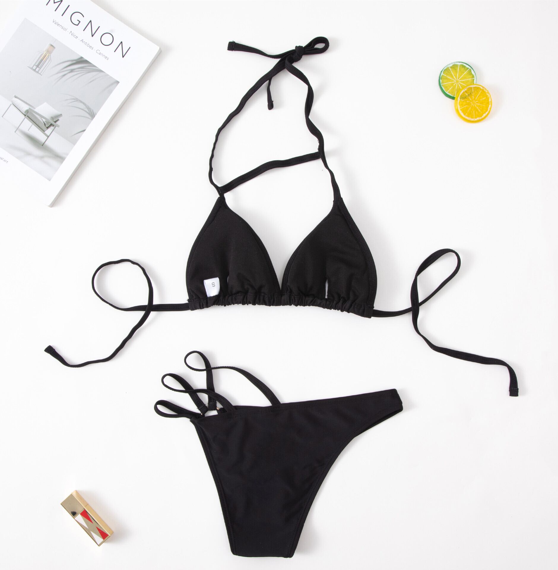 送料無料 マイクロビキニプッシュアップ女性水着 2022 Tバック水着ビーチウェア Tバック水着黒ビキニセットビーチウェア Biquini ブラック AE1212556521908599173
