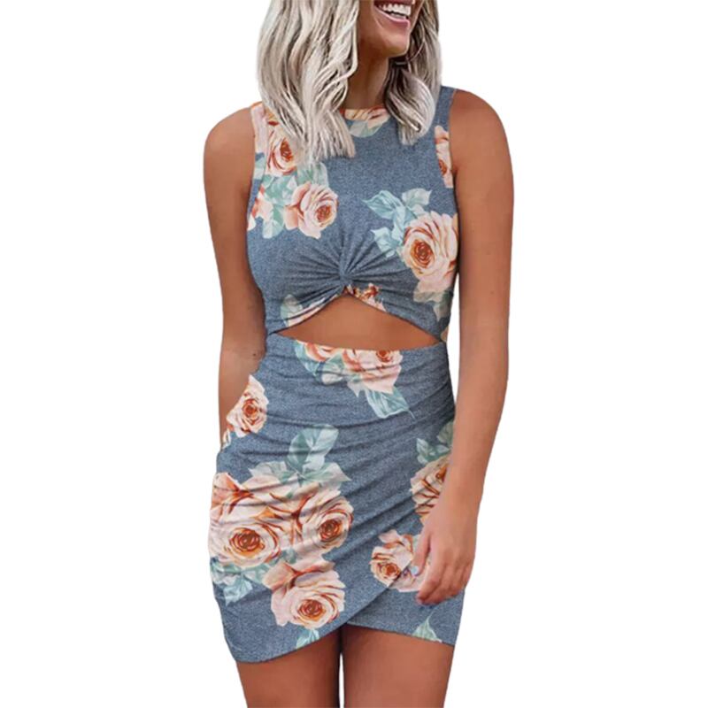 送料無料 女性ノースリーブボディコンドレスカットアウト秋冬スリムツイストラップショートタンクシャツミニドレススリムフィットパーティーイブニング サマー 夏物 AE166565691031930192