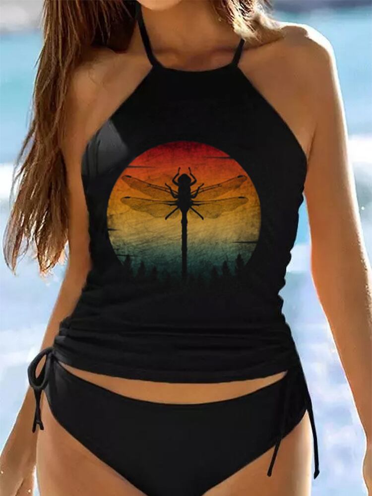 送料無料 女性用 水着 トンボ サンセット 巾着 サイド ホルターネック タンキニ セット ツーピース 水着 トップ アンダーワイヤー付き 2023 夏 サマー 夏物 AE166565686352994622