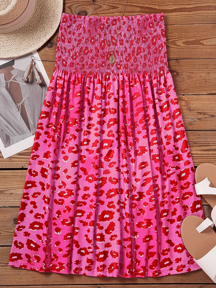 送料無料 女性のピンクヒョウストラップレスプリーツ流れるスケーターミニチューブドレスオフショルダー A ラインドレスビーチカバーアップサンドレス Aライン AE166565697967658984