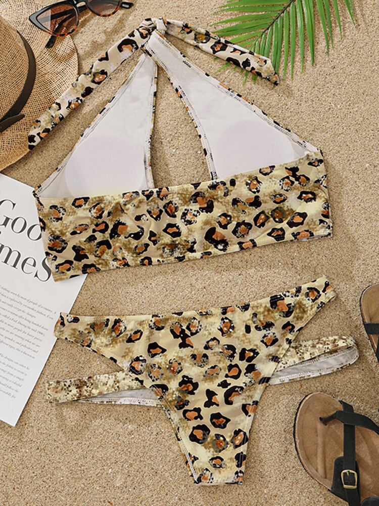 送料無料 女性のセクシーなヒョウホルタービキニセットグリッター水着中空アウト水着 2023 トレンドツーピース水着タイストラップ AE16656561184830503