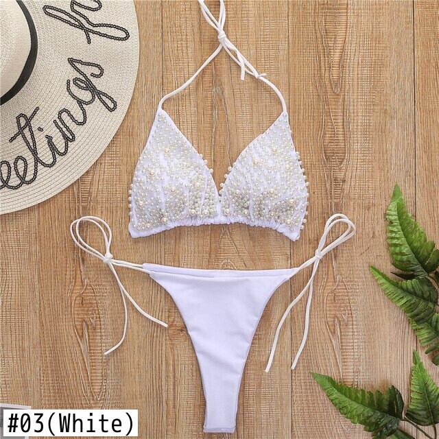 送料無料 セクシーなパール Tバックビキニ 2022 水着女性マイクロミニビキニセット包帯レースアップ水泳ビーチウェア水着女性水着 真珠 AE121288787855116323696