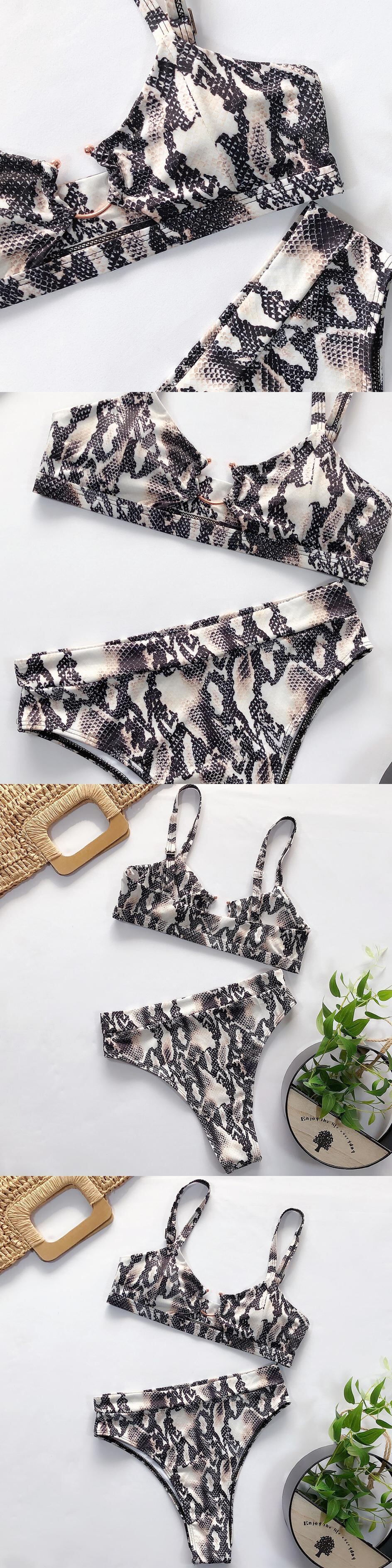 送料無料 セクシーな水着女性ウエストビキニマイクロレッグ水着水着スネークプリント水着女性 2023 ビキニセット AE121288787820793368725