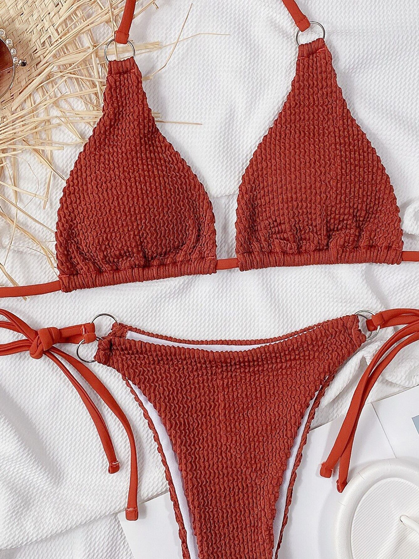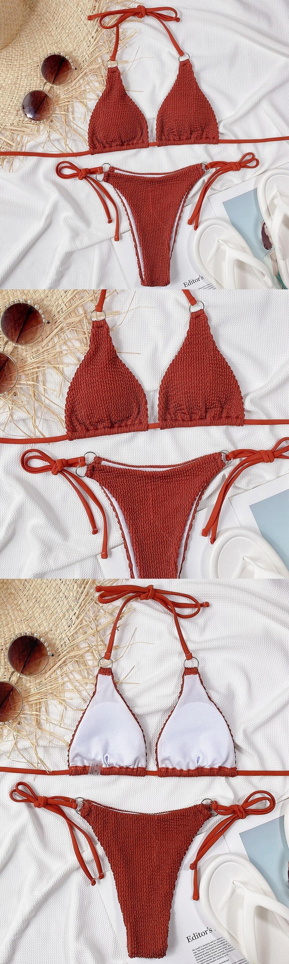 送料無料 セクシーなビキニ 2022 女性無地水着水着女性の夏の Tバックストリングビキニセット 2 個ビーチウェア水着 サマー 夏物 AE121288787821898967024