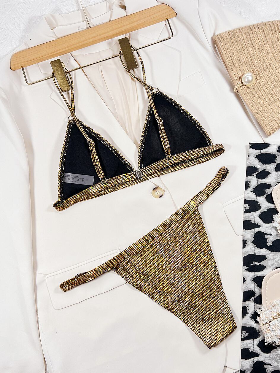 送料無料 セクシーな光沢のあるスパンコールレッグカットビキニ 2023 女性水着水着ブラジルマイクロビキニセット Tバック浴女女性水着 AE121288787855328086826