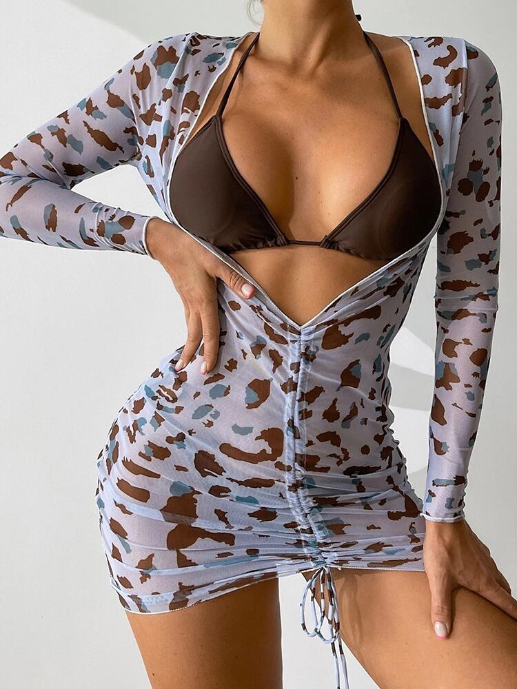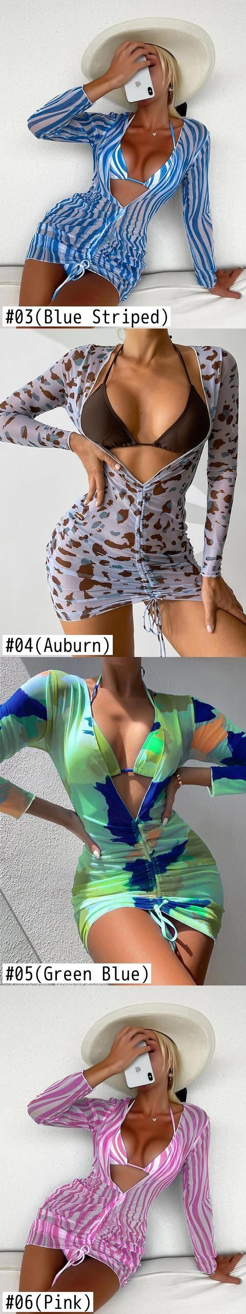 送料無料 セクシーなビキニ 2022 女性ストライプ 3 ピースビキニセットカバーアップ水着長袖水着夏のビーチウェア水着 ロング サマー 夏物 AE121288787878010127552