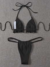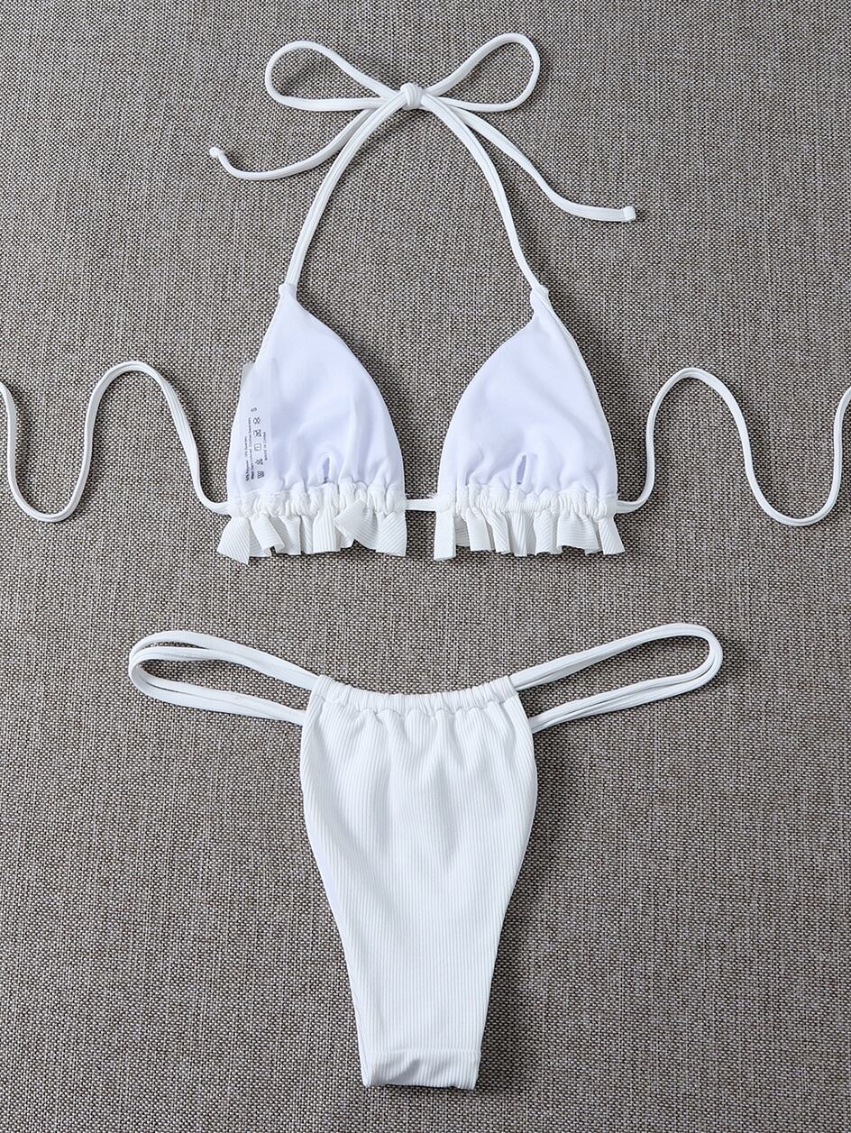 送料無料 セクシーなフリルビキニ 2022 女性水着 Tバックフェミニンビキニセット 2 個ホルター水着女性水着水着 AE12128878785561388183
