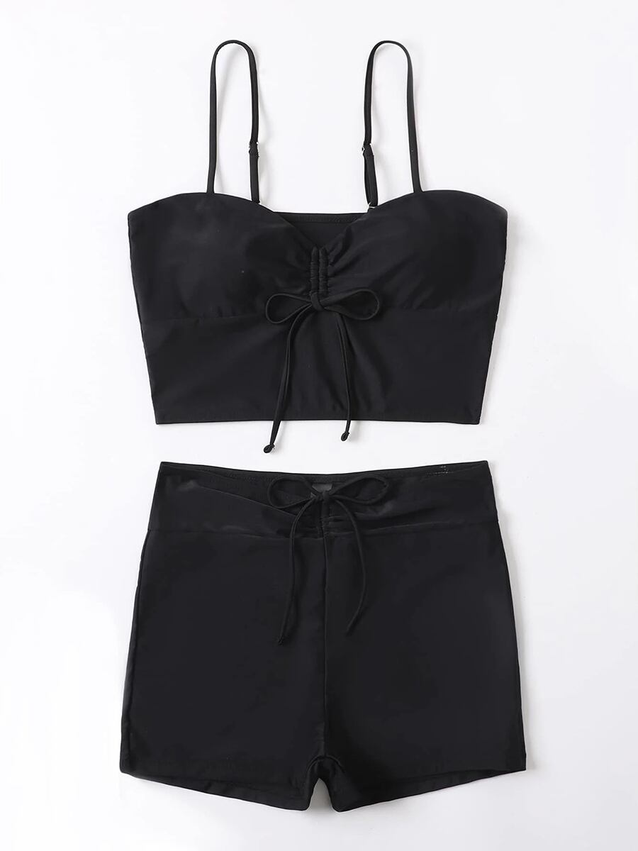 送料無料 ネクタイフロントショーツビキニ水着女性 2023 水着ウエストビキニセットプッシュアップ水着ビーチ水泳女性 ブルマー AE121288787836291034077