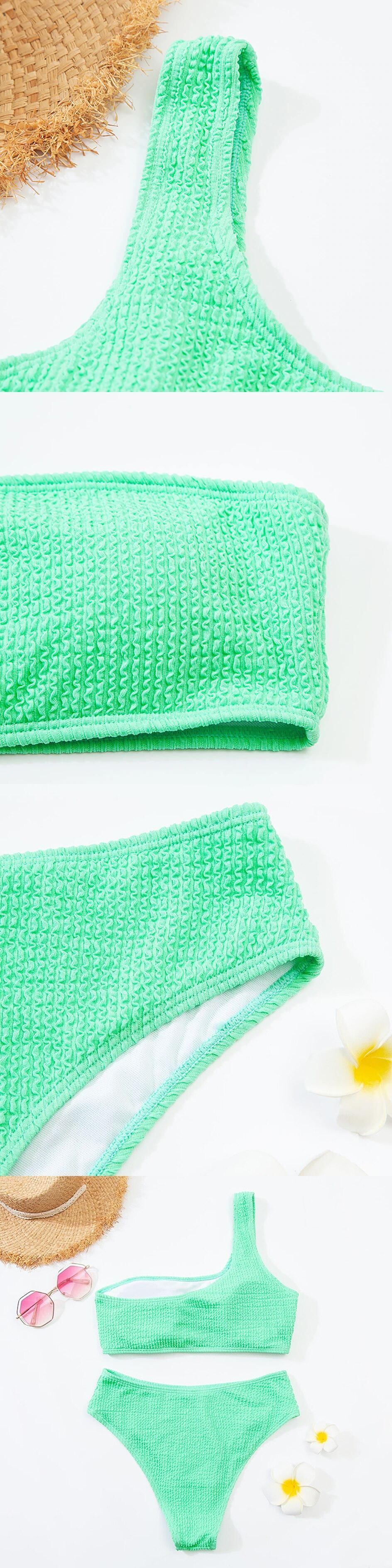 送料無料 セクシーなリブビキニ 2022 女性の夏の水着女性の水着ウエストビキニセットチューブトップワンショルダービーチ水着着用 サマー 夏物 AE121288787889552214153
