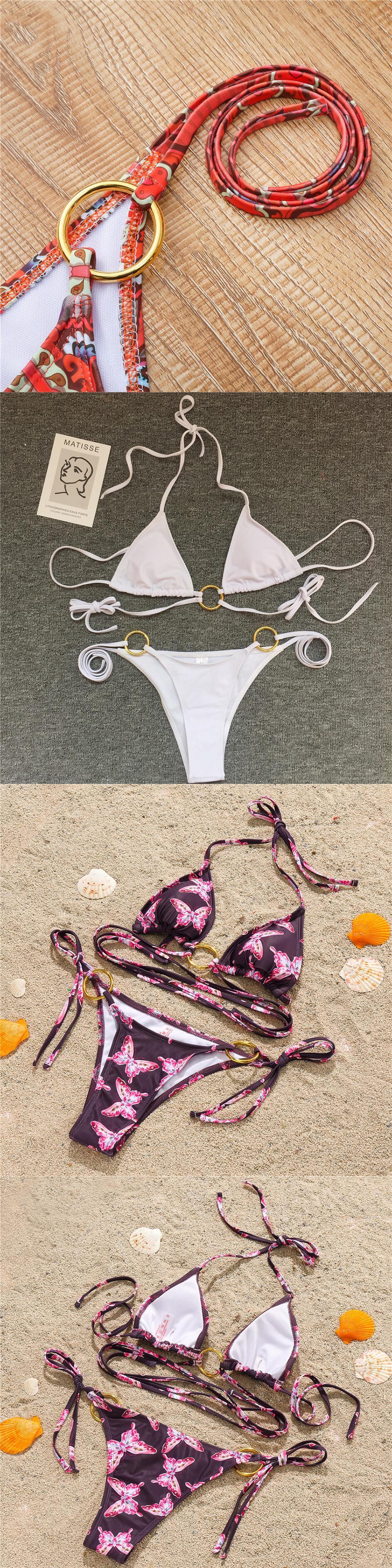 送料無料 セクシーなマイクロビキニ 2022 リングリンク水着女性水着 Tバックビキニセット 2 個女性水着水泳ビーチウェア 指輪 AE121288787888140139427