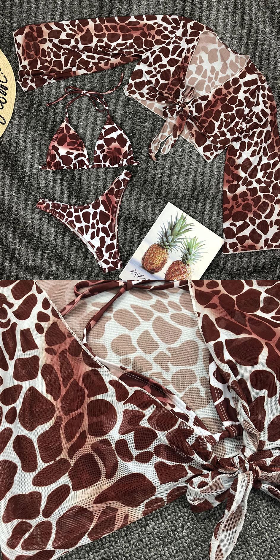 送料無料 セクシーなヒョウビキニセットビーチカバーアップ 2 点セット女性水着 2022 ビキニ水着女性水着水着 AE121288787826364393145