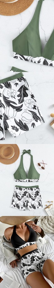 送料無料 セクシーなショーツウエストビキニ水着女性 2023 水着プッシュアップビキニセットホルター水泳女性水着 ブルマー AE121288787841018980932