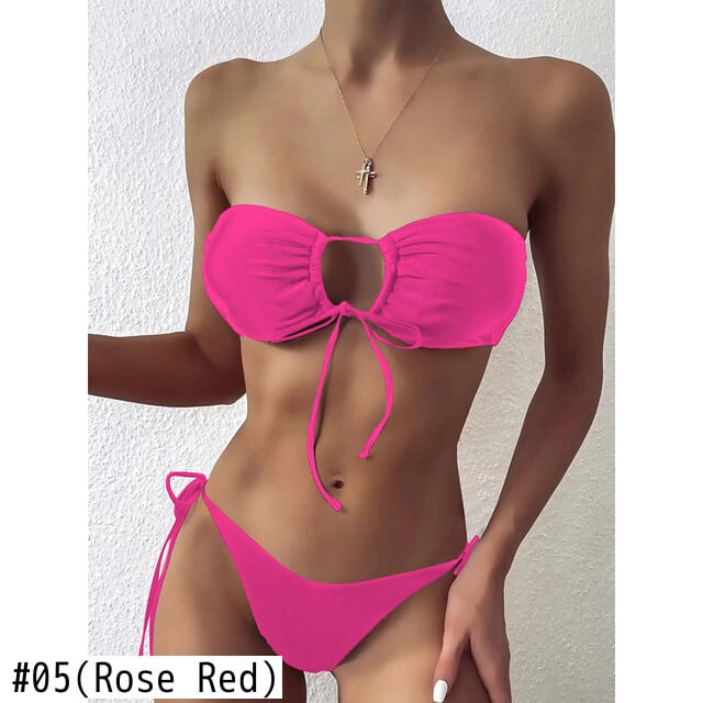 送料無料 セクシーなビキニ 2022 女性バンドゥ水着黒水着女性 Tバックビキニセット 2 枚水泳ビーチウェア水着 ブラック AE121288787882243442376