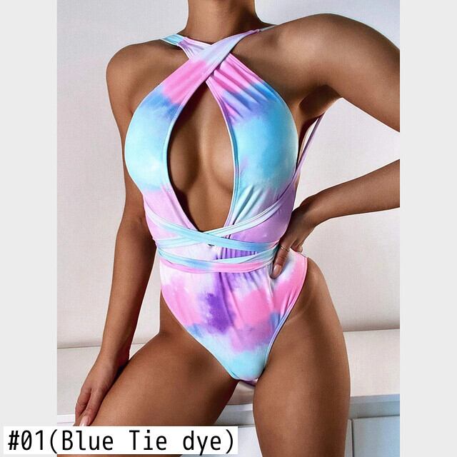 送料無料 水着女性ワンピース水着 2022 セクシーなタイダイ水着女性ボディスーツ包帯クロス水泳ビーチウェアモノキニ AE121288787889177501353