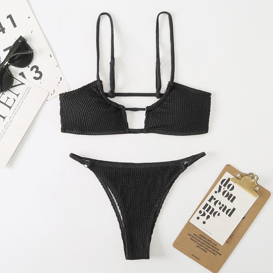 送料無料 セクシーなビキニ 2022 リブ無地バンドー水着水着女性 Tバックビキニセット海水浴者水泳ビーチウェア水着 AE121288787877159278708