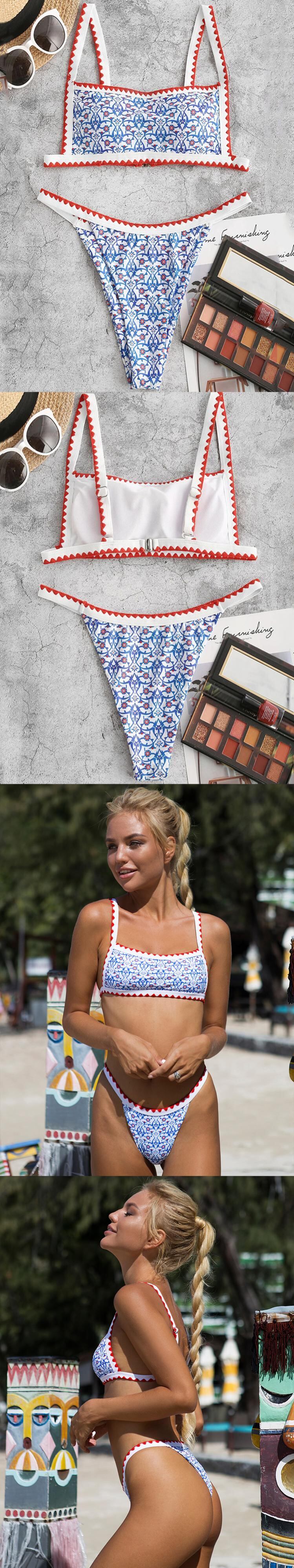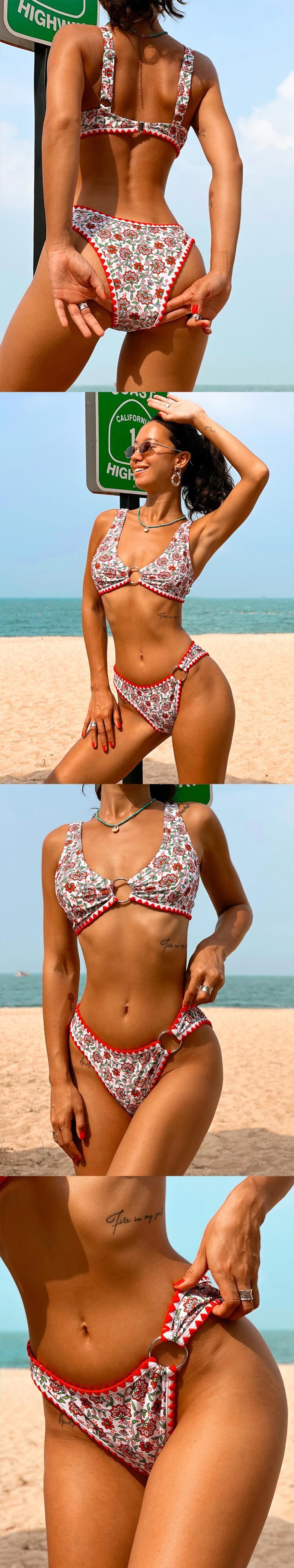 送料無料 Peachtan ヴィンテージプリントバンドゥ水着女性のセクシーなカット 2 個ビキニ 2023 女性スポーツ水着 Tバック水着 ビンテージ AE332320087830797890923