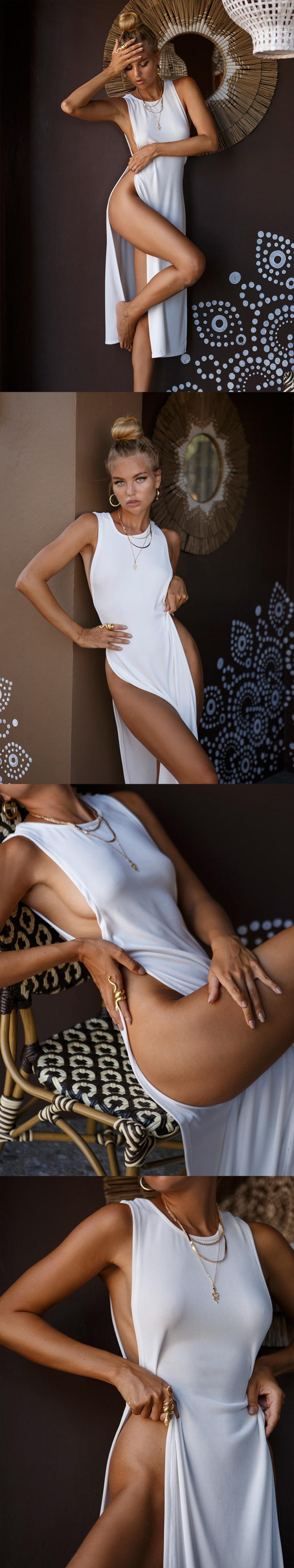 送料無料 Peachtan ピンク ノースリーブ ビーチドレス サイド スリット 包帯 カバーアップ ロング パレオ ワンピース 夏の女性の水着 サマー 夏物 AE33232008787520487003