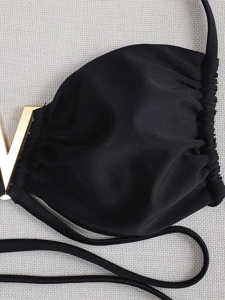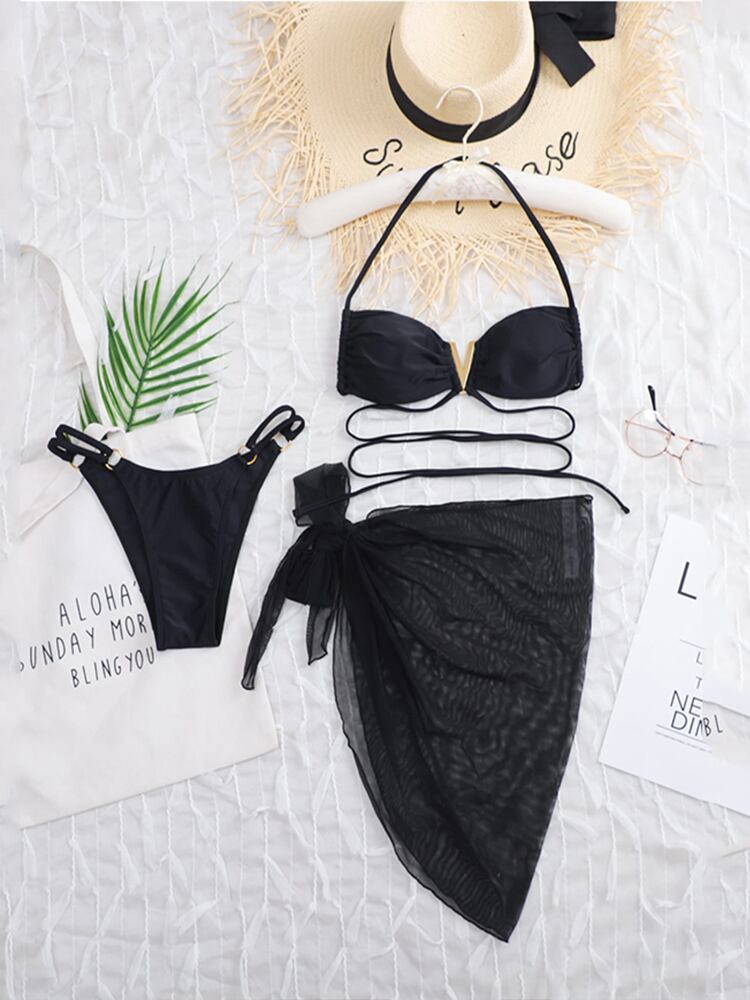 送料無料 Peachtan バンドー水着女性包帯ホルタービキニセットスカート 3 個セット固体水着女性 V ネック水着 2021 Vネック ソリッドカラー AE332320087813675105743