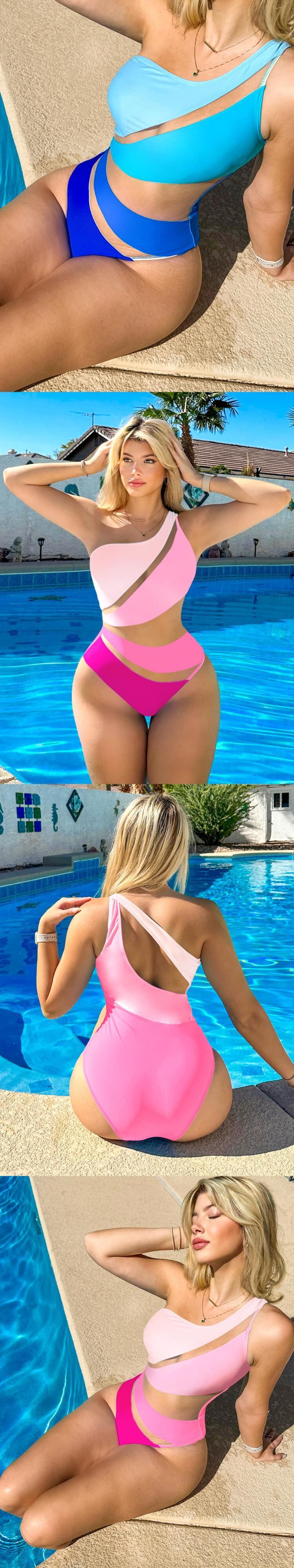送料無料 セクシーなワンショルダーメッシュパッチワークワンピース水着女性 2023 中空アウトカット女性の水着モノキニプッシュアップビキニ AE33232008785819967724