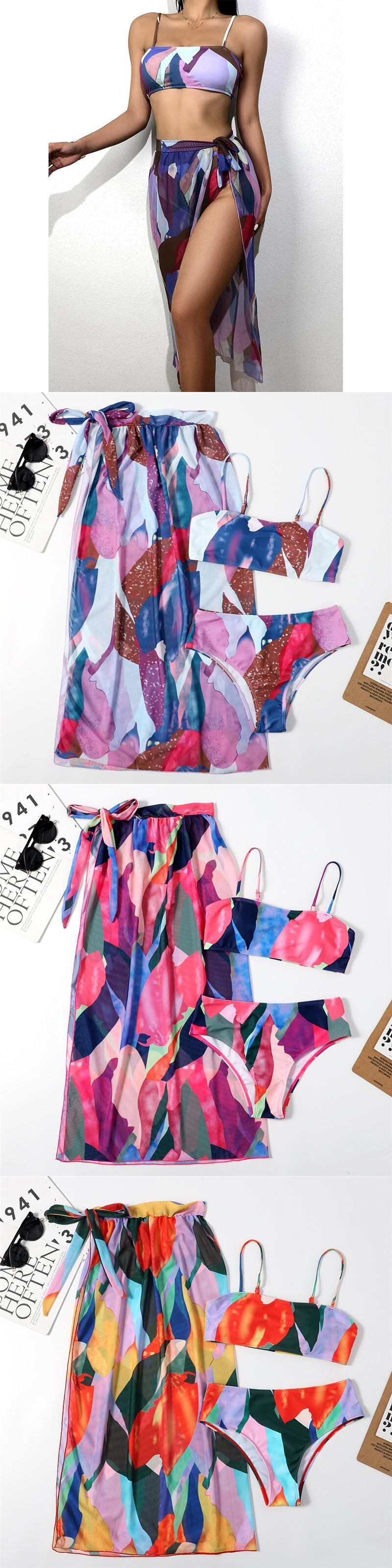 送料無料 Peachtan バンドーウエストカラーブロックプリントスカート 3 点セットビキニ 2021 水着女性水着女性水着 AE332320087841827410072