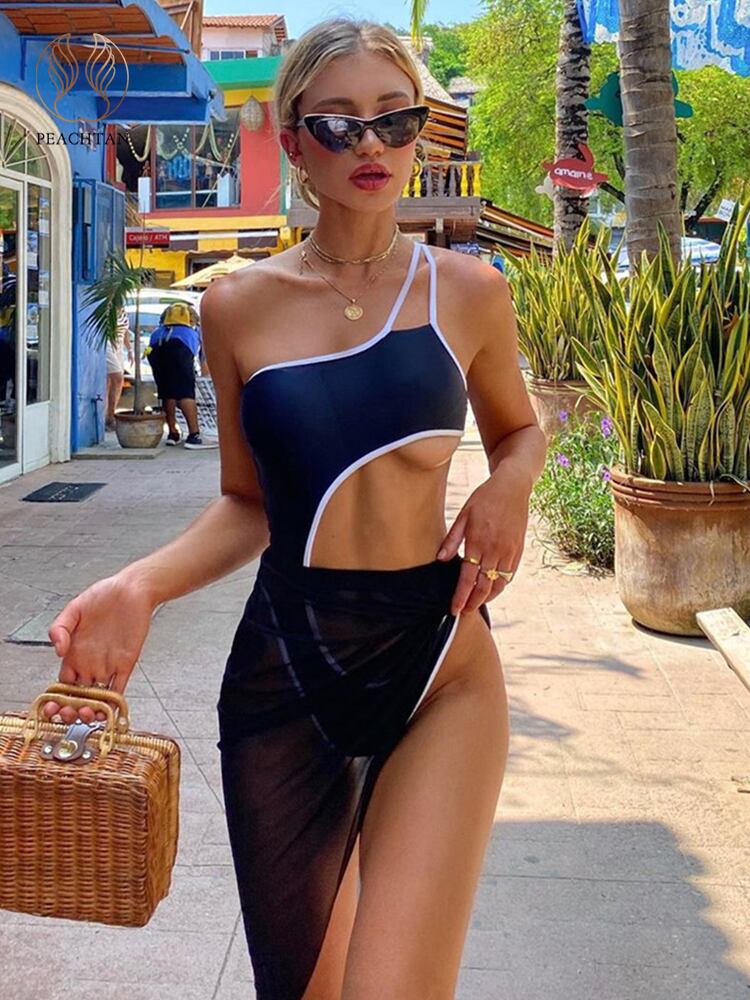 送料無料 モノキニ ツーピース ビキニ セット ドレス付き ワンショルダー 中空アウト レディース 水着 セクシー プッシュアップ ワンピース水着 2023 女性 AE332320087818852407326