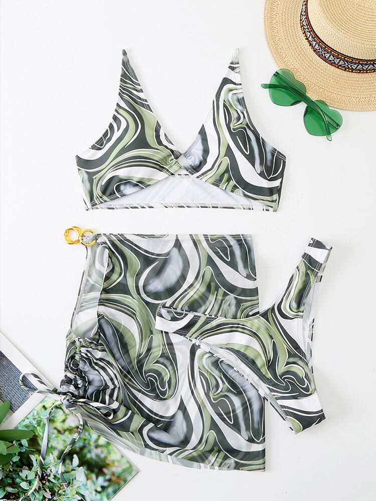 送料無料 タイダイプリント 3 ピースビキニスカート水着女性ホルター水着 conjunto biquinis feminino trajes de baño mujer AE332320087810192426846
