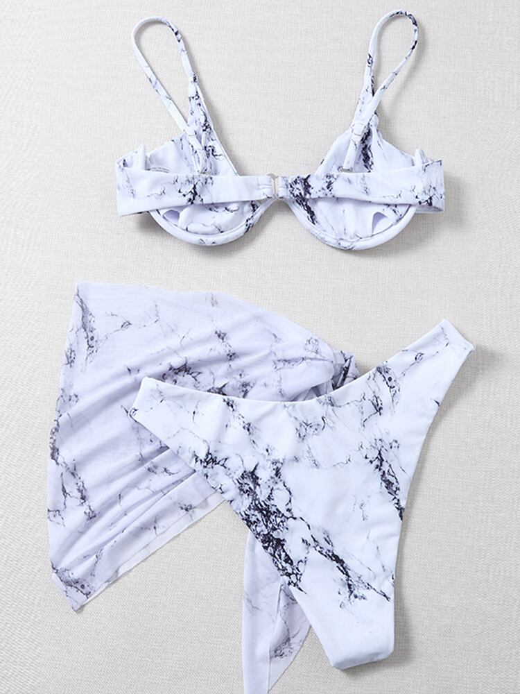 送料無料 Peachtan プッシュアップ水着女性スカート 3 個セット大理石プリント水着女性アンダーワイヤービキニ 2021 セクシーな水着 biquini レッド AE332320087850834775231
