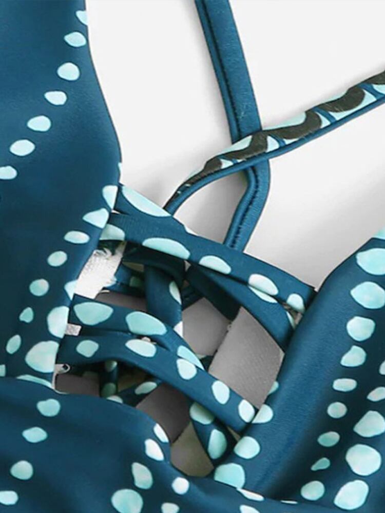 送料無料 Peachtan ネイビードットプリントビキニセットレースアップクロス Tバック三角水着 2023 女性のセクシーなローウエストプッシュアップ女性の水着 AE332320087888970398666