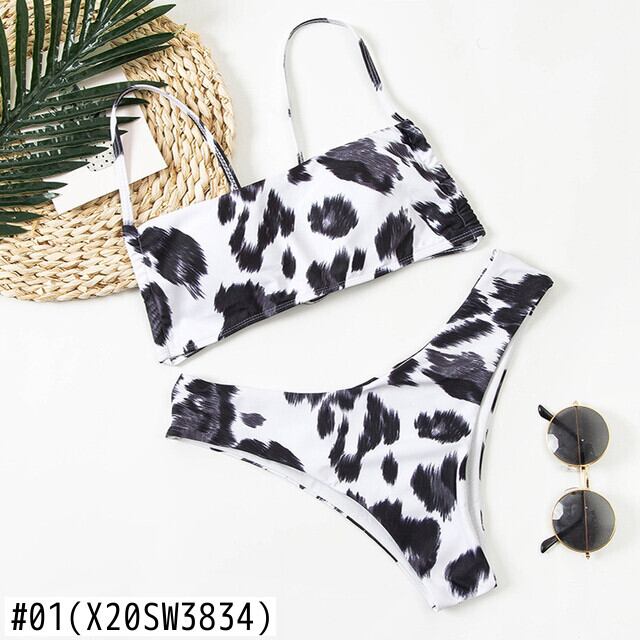送料無料 Peachtan セクシーな牛プリントビキニセットバンドゥ背中の開いた水着女性カット水着女性マイクロビキニストリング水着 AE332320087816044847875