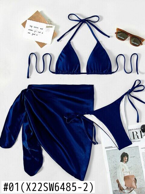 送料無料 2023 スリーピースビキニセットジェムブルー女性の水着マイクロホルター水着セクシーなブラジリアン Tバックローウエスト水着女性 AE332320087830909244237