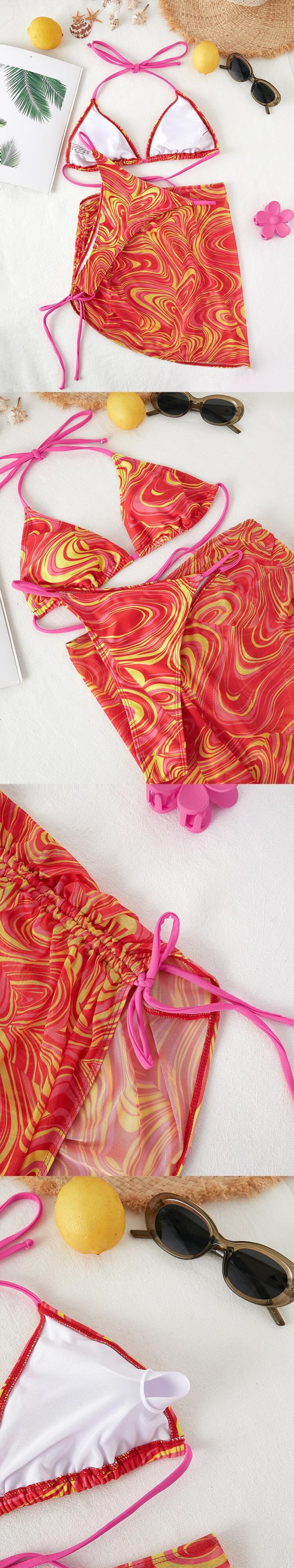 送料無料 Peachtan セクシーなプッシュアップ 3 ピースビキニセットスカートタイダイストリングローウエスト Tバック水着 2023 ホルター水着 AE332320087871747571601