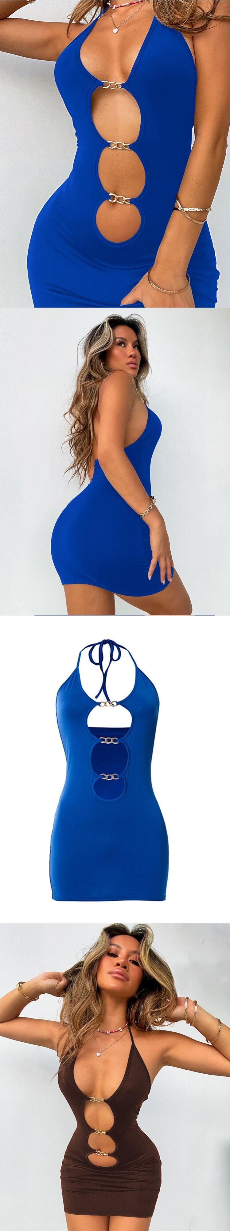 送料無料 ネオンカラービーチドレスセクシーな中空アウトワンピース女性の水着マイクロホルタービーチ衣装女性背中の開いたカバーアップ AE332320087831005606601